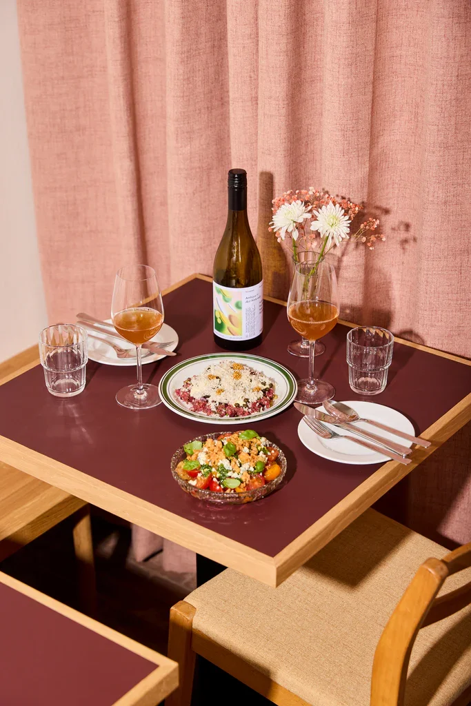 We focus on one ingredient each month, which we use to create several different dishes. In August, tomato takes center stage, while in September it's mushroom. The place has a bistro foundation, and we want to be a neighborhood spot where people can drop by for a casual bite — before or after other activities. The atmosphere is cozy and relaxed, with a low-key vibe. Although we draw inspiration from around the world, the ingredient of the month is always Norwegian.